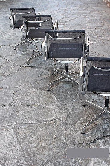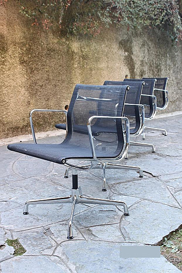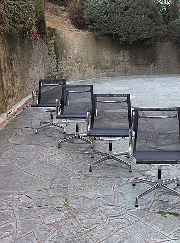 Four new chairs Vitra, model Aluminium Chairs EA 105/107/108 designed by Charles & Ray Eames, 1958. The Aluminium Chairs offer an ideal solution for meeting rooms. They feature in the elegant furnishings of numerous offices, conference and meeting rooms throughout the world.