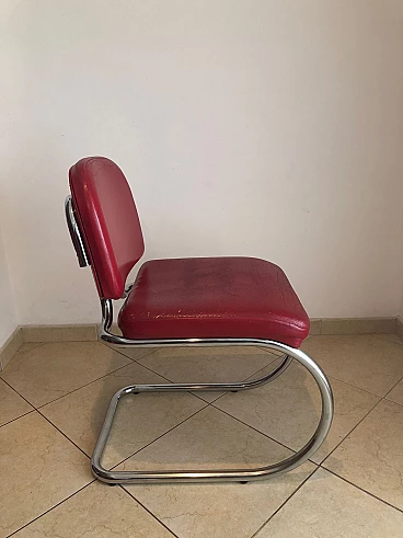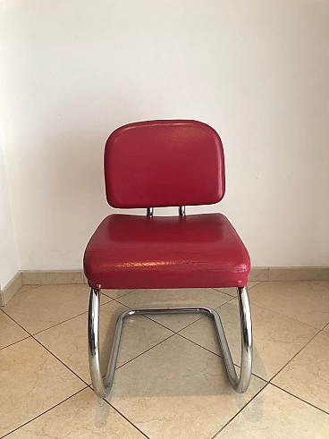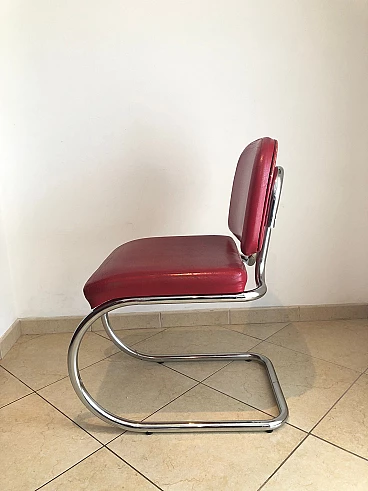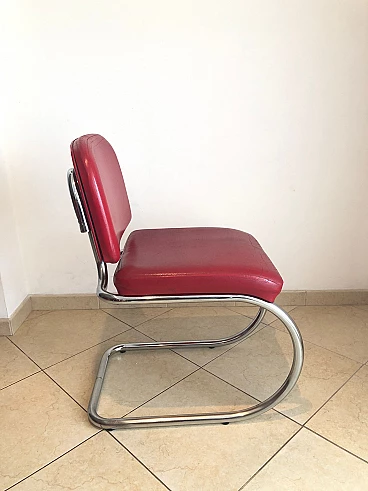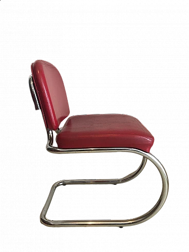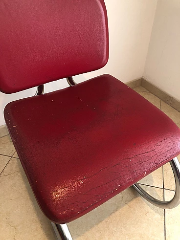 4 Bauhaus style chairs in steel and red faux leather, 1970s
