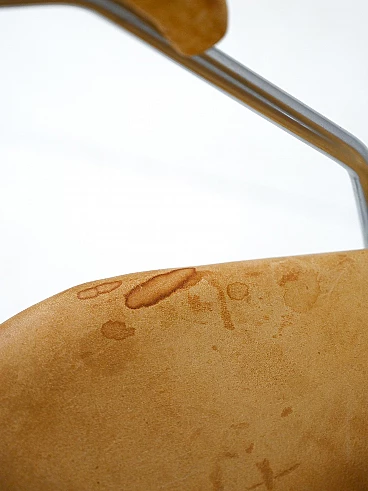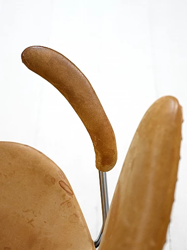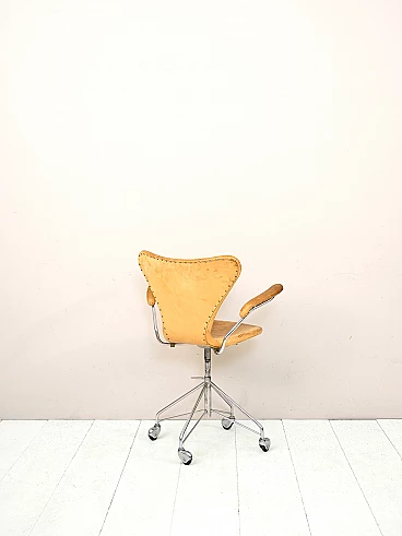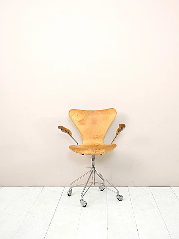 Office swivel chair model 3217 in patinated leather designed by Arne Jacobsen for Fritz Hansen. Made in Denmark. The chair is original 1950s vintage. Very good condition. Good condition. A conservative restoration has been done with natural products. The cushions have been reupholstered. It may show signs of aging. Please pay attention to the photographs.