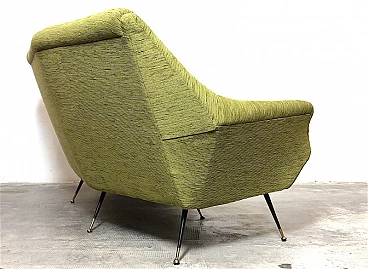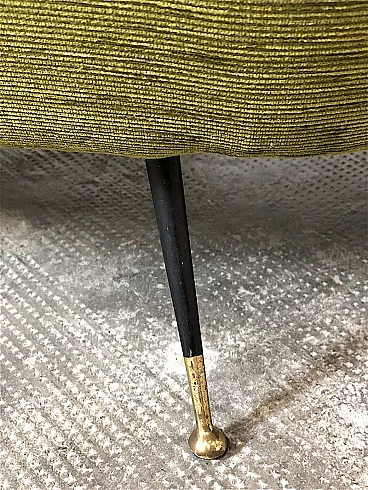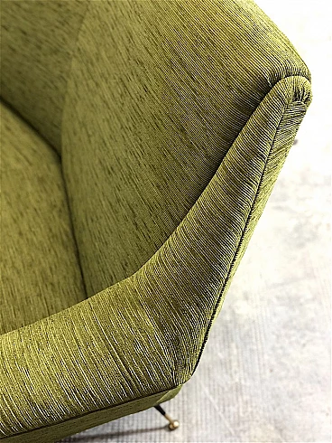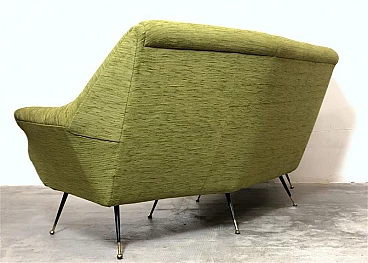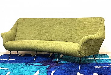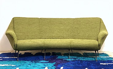 Three-seater sofa by Gigi Radice for Figli by Renzo Minotti, 1960s. Wood structure, brass feet with the typical design of the 1960s, green bouclé cotton fabric upholstery. Fully restored. Seat: 160 x 60 cm. Seat height: 45 cm.