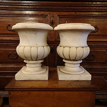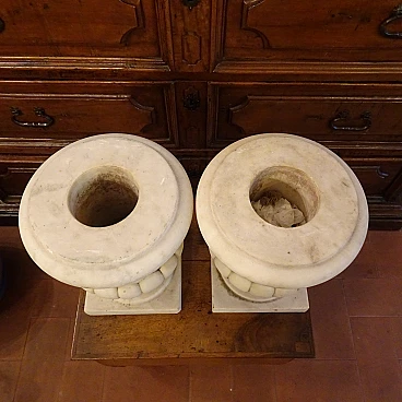Pair of white Carrara marble vases, early 20th century