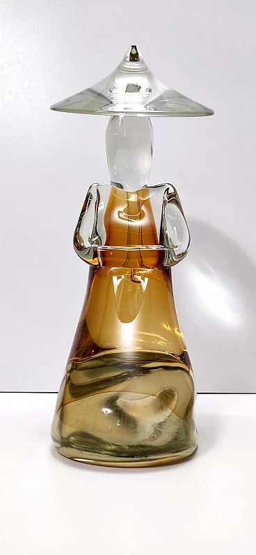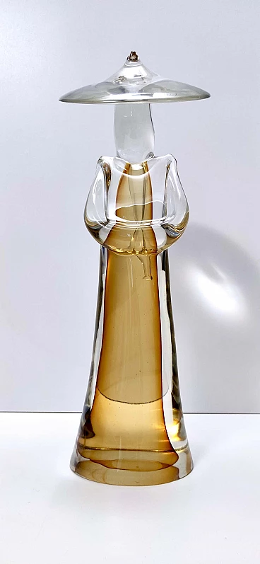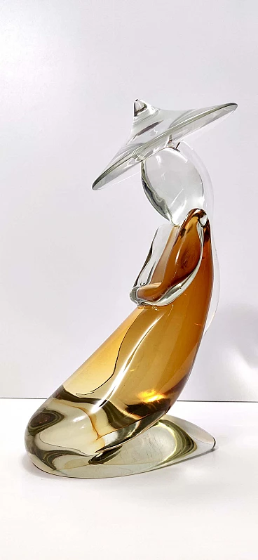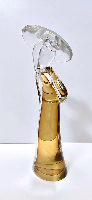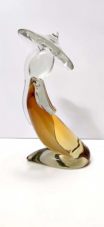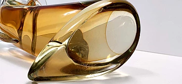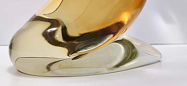 Made in Italy, 1960s-70s. These two sculptures are made of amber-coloured submerged Murano glass and are quite heavy.