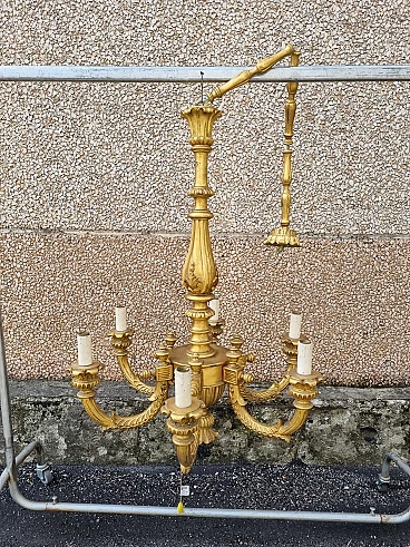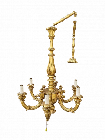 Six-light gilded wood chandelier, early 20th century. No woodworms.