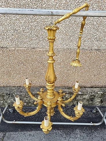 Six-light gilded wood chandelier, early 20th century 4