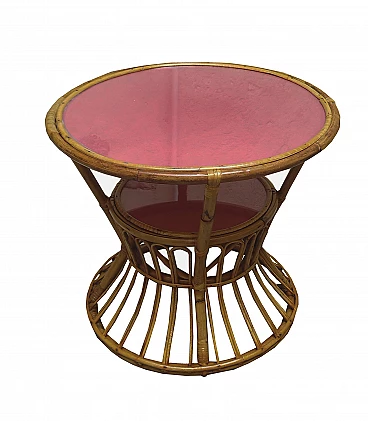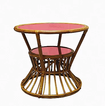 Bamboo, rattan and red glass coffee table by Tito Agnoli, 1960s 1