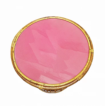 Bamboo, rattan and red glass coffee table by Tito Agnoli, 1960s 2