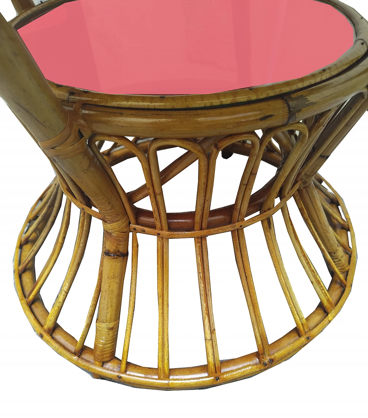 Bamboo, rattan and red glass coffee table by Tito Agnoli, 1960s 4
