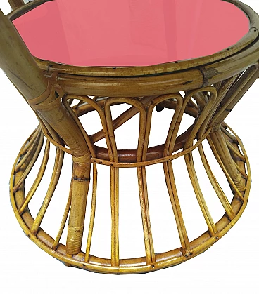 Bamboo, rattan and red glass coffee table by Tito Agnoli, 1960s 3