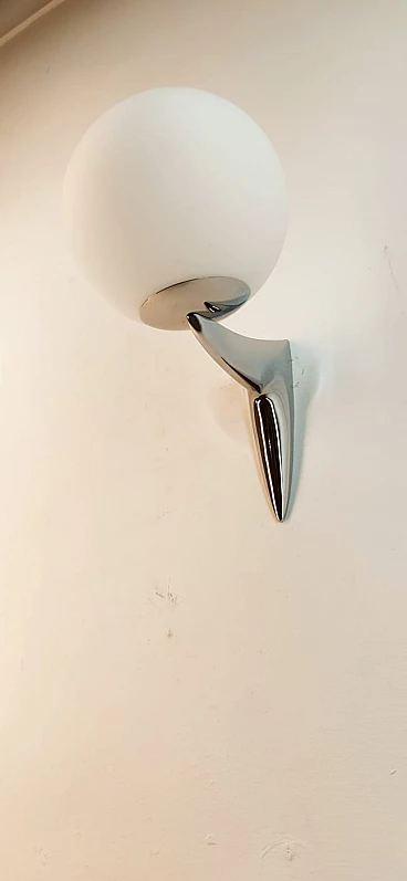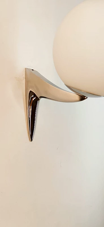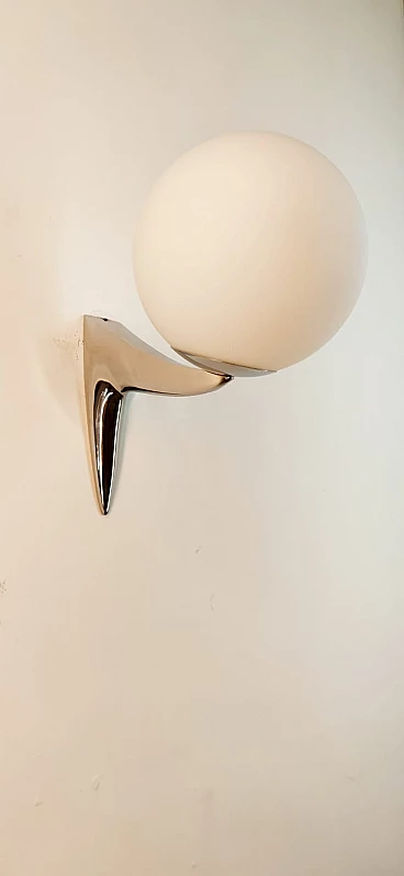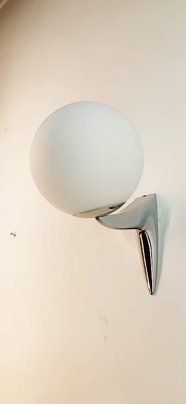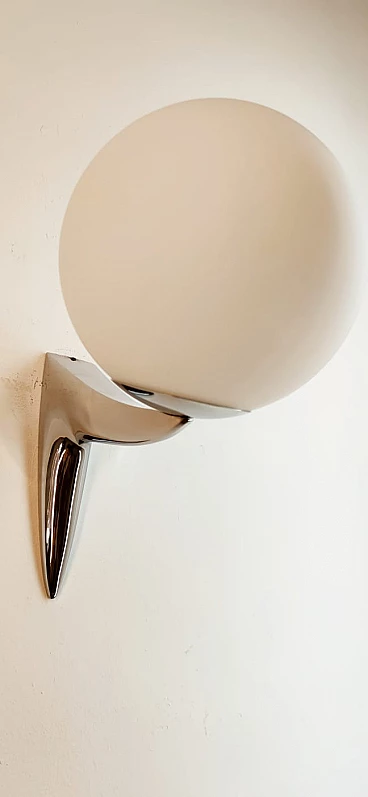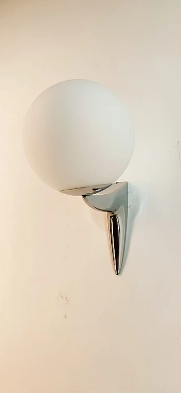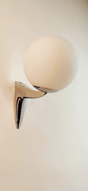 Single chrome-plated brass wall light with sphere-shaped glass, 1970s