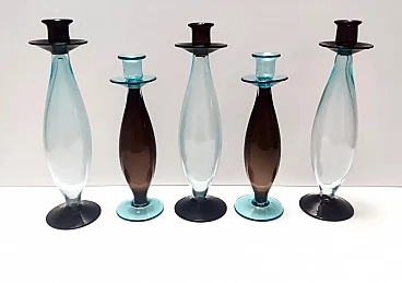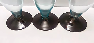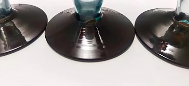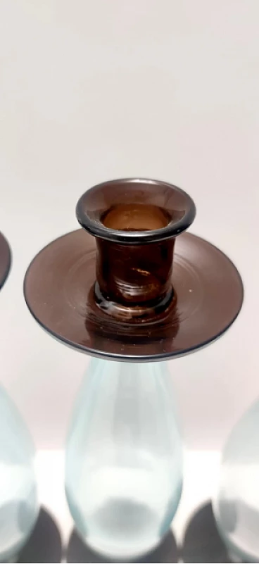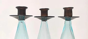 3 brown and aquamarine Murano glass candle holders, 1980s