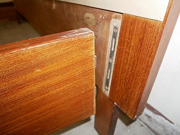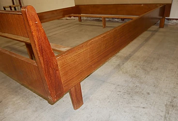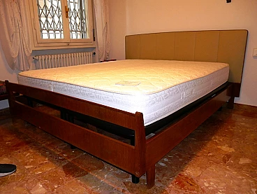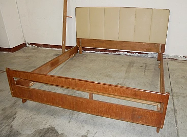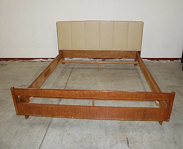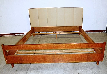 Double bed in teak veneer with leatherette headboard, 1960s