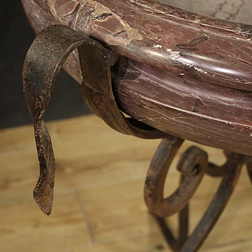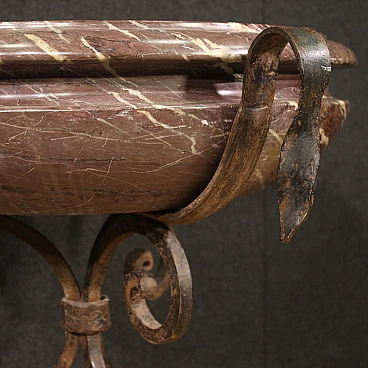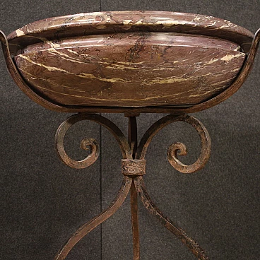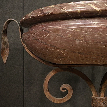 Marble planter with wrought and chiselled iron tripod, 1940s 9