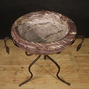 Marble planter with wrought and chiselled iron tripod, 1940s