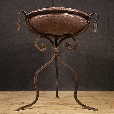 Marble planter with wrought and chiselled iron tripod, 1940s 1