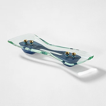Crystal and brass candle holder by Max Ingrand for Fontana Arte, 1950s