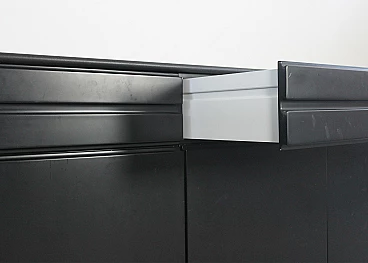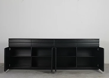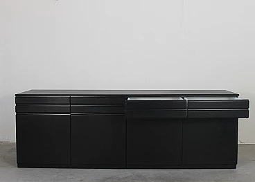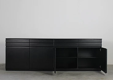 CS49 sideboard by Vico Magistretti for Poggi, 1970s. Structure in black lacquered wood and top covered with black skai. Equipped with four drawers and four doors with inner shelves.