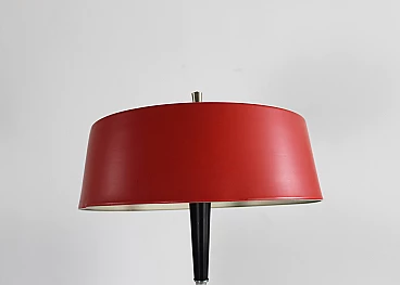 Table lamp by Oscar Torlasco, 1950s. Base in black lacquered metal, stem in chromed and black lacquered metal and lampshade in red lacquered metal.