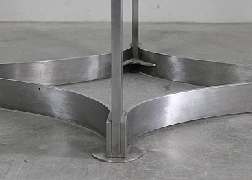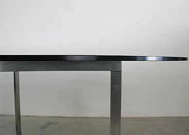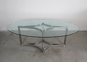 A very rare dining table with a beautiful steel base and an oval-shaped thick glass top, designed by Vittorio Introini and produced by Saporiti in the 1970s.