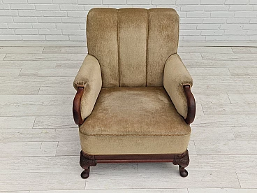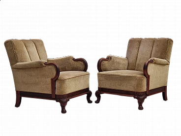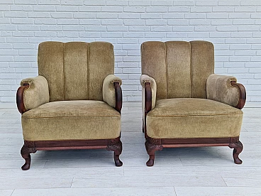Pair of Danish teak armchairs with velvet upholstery, 1950s