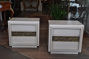 Pair of bedside tables with gilded bronze handle by Luciano Frigerio, 1970s