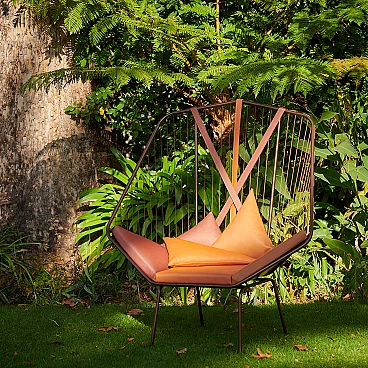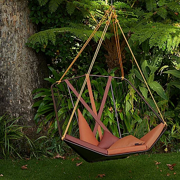 The AngleSeven chair by Studio Stirling has a distinctive design with a unique, unusual and memorable geometry. It not only catches the eye with its striking appearance, but also offers a cosy haven to sit and relax, designed with ergonomics, great comfort and relaxation in mind. The AngleSeven Seat is not only spacious and elegant in its functional design, it is made for the outdoors. Whether you choose the suspended seat option, which features a specially designed tension spring for a soft floating feeling, or the chair with legs for a stable feel, this chair adds a touch of modern style to any outdoor setting or environment.