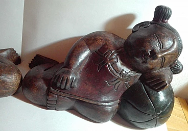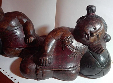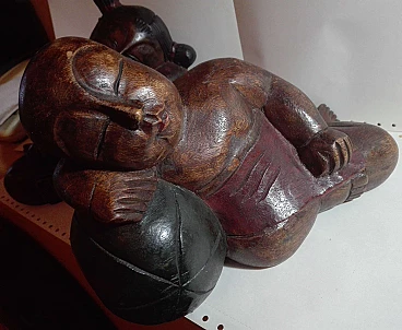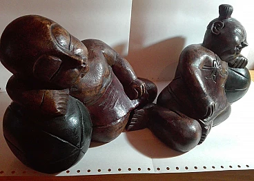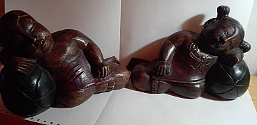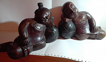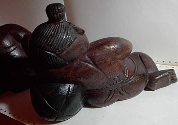 Pair of solid wood sculptures of sleeping figures, 1980s