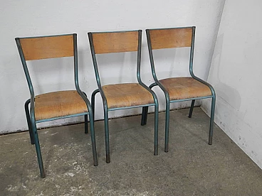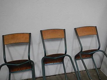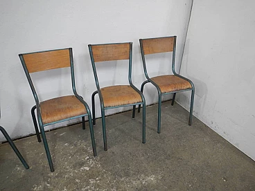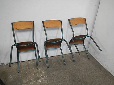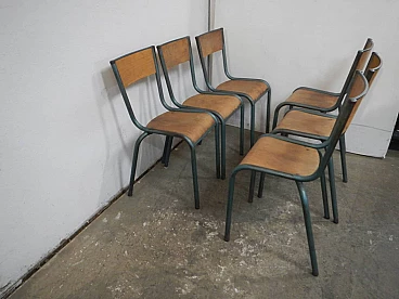 6 Green iron and birch stackable chairs by Mullca, 1960s