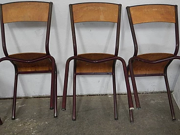 6 Burgundy iron and birch stackable chairs by Mullca, 1960s