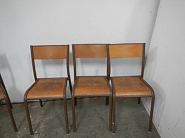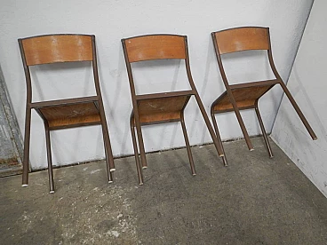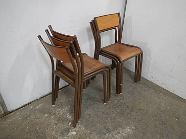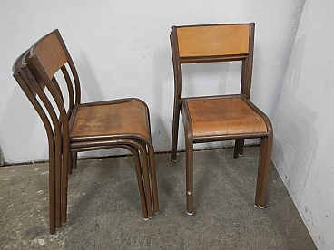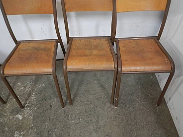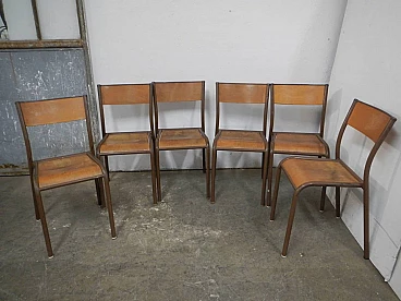 6 Brown iron and birch stackable chairs by Mullca, 1960s