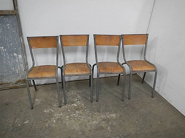4 Gray iron and birch stackable chairs by Mullca, 1960s