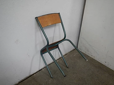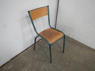 Green iron and birch chair by Mullca, 1960s