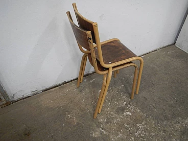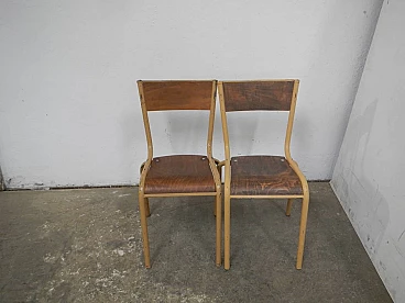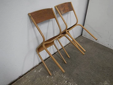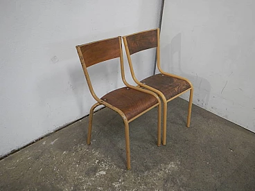 Pair of stackable iron chairs with birch blockboard seat by Mullca, 1960s