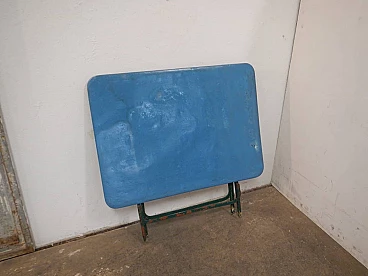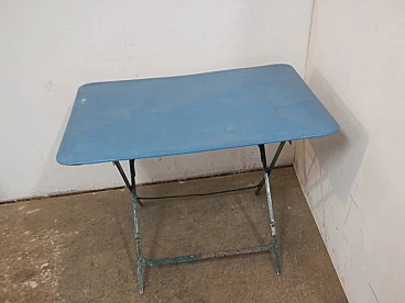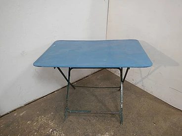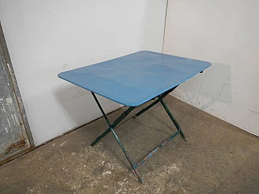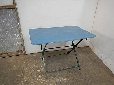 Folding rectangular iron garden table coloured blue and green, 1950s