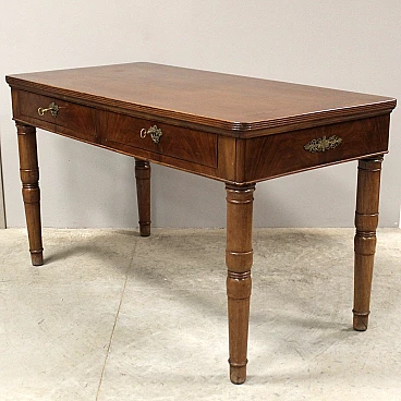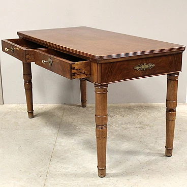Charles X solid walnut desk with drawers, first half of the 19th century