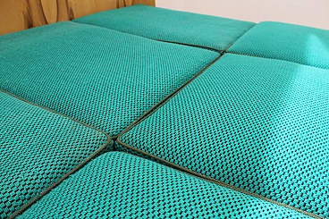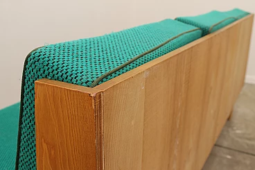 Folding sofa bed by Jitona, made in the former Czechoslovakia in the 1970s. Beech structure and green-light blue fabric upholstery. It shows slight signs of wear. Seat height: 42 cm. Sleeping surface: 126 x 195 cm.