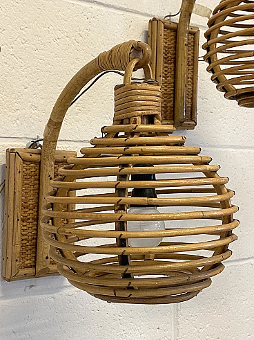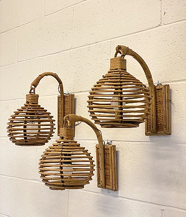 3 Bamboo and wicker wall lamps, 1970s