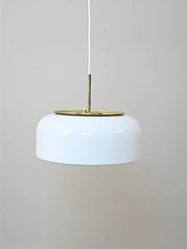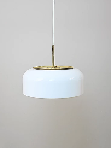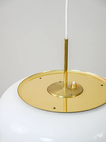 Knubbling hanging lamp by Anders Pehrson for Ateljé Lyktan, 1970s. Consisting of a white hard plastic and gilded metal lampshade. Original electrical system, recommended to be replaced for proper use.
