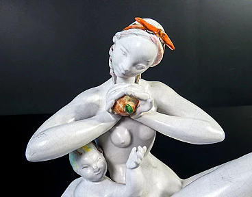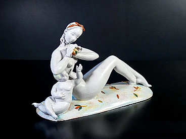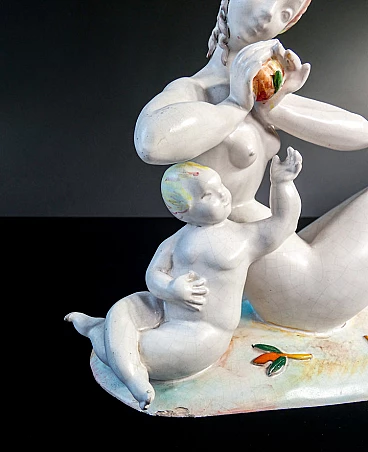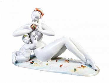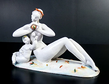 Eugenio Pattarino, female nude with child, ceramic sculpture, 1920s
