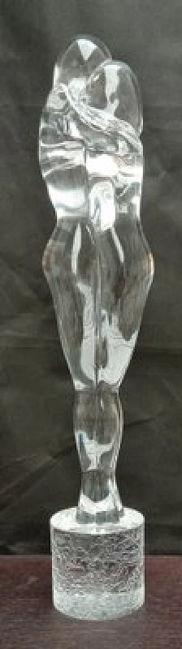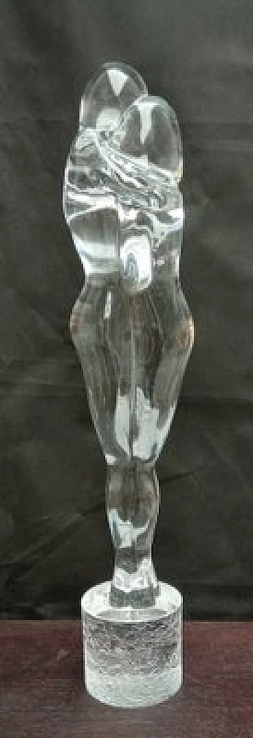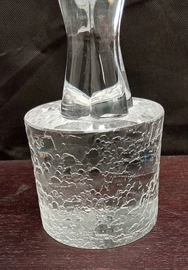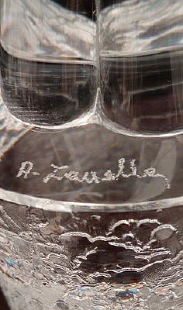 Hand-blown and hand-worked Murano glass sculpture signed A. Zanetti. Transparent colour, with acid-corroded base.