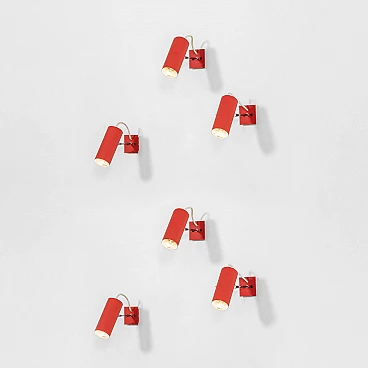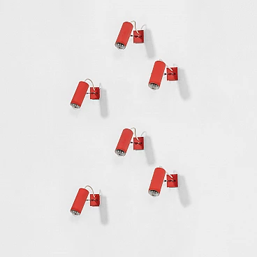 Group of six red metal wall lights mod. 36 by Gino Sarfatti for Arteluce, 1950s (1951). Original mark present (see photos).