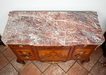 Napoleon II chest of drawers in exotic precious woods with marble top, 19th century