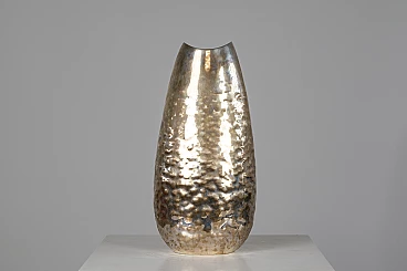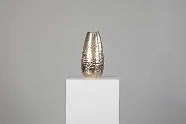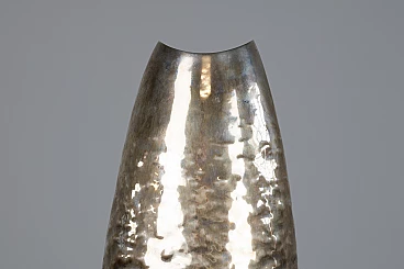 Hammered silver ovoid vase with a slightly rusticated surface. This elegant centrepiece was designed by Luigi Genazzi and produced by Calderoni Jewels. Marked under the base with the maker's mark (Calderoni Jewellery). Dates from the second half of the 20th century. Calderoni was founded in 1840 in Via della Lupa in Milan, now known as Via Torino. At the time, Milan was a romantic city, dominated by the Habsburg dynasty. In 1870, Calderoni opened a prestigious factory in Piazza Duomo, which soon became a landmark for the city's aristocracy. Calderoni became the official supplier to the House of Savoy and its prestigious customers included the nobility and royal houses of Europe.