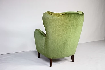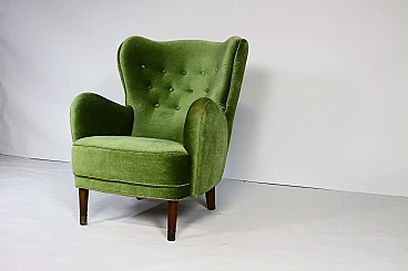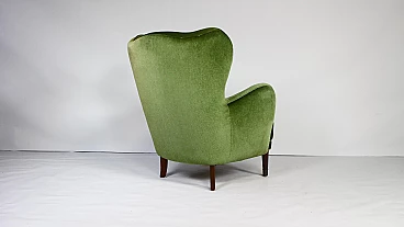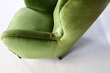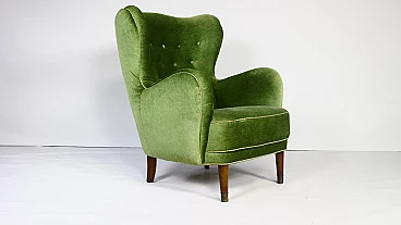 Danish lounge armchair in stained beech and green velvet, 1950s