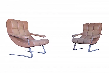 Pair of armchairs. Brushed steel, upholstered vinyl leather. Production Tecnosalotto 70s.