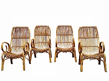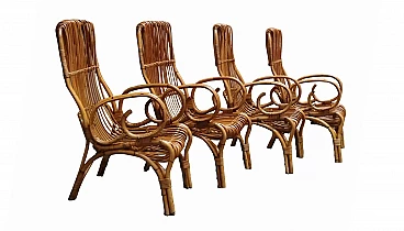 4 Rattan chairs and round table attributed to Franco Albini, 1960s