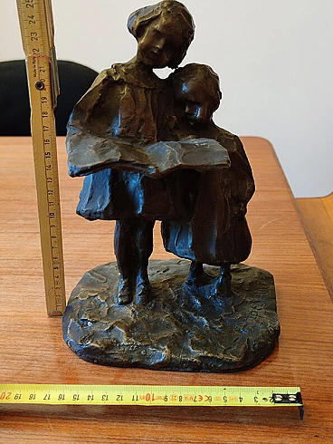 Lina Arpesani, little girls reading, bronze sculpture, 1920s