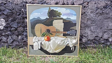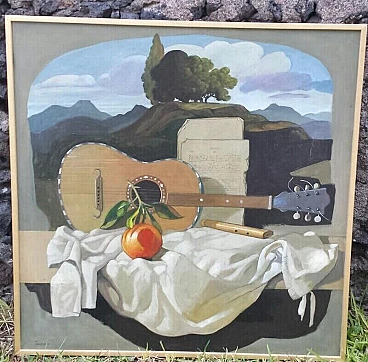 Saro Tricomi, Guitar, drape and landscape, oil painting on canvas, 2016
