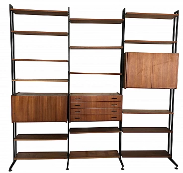 Modular wooden bookcase 60's with iron structures