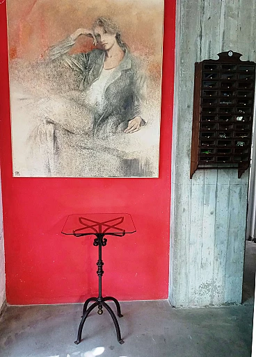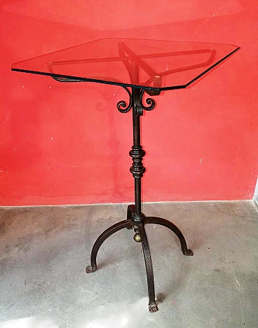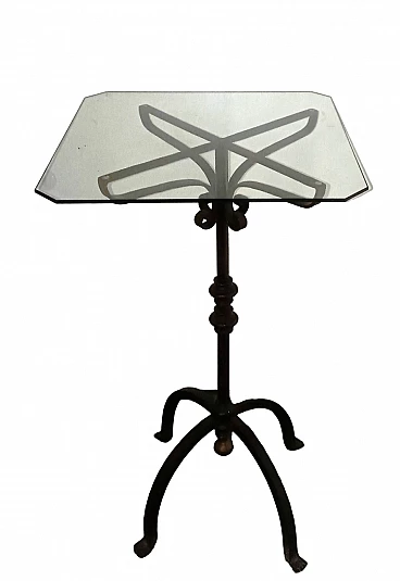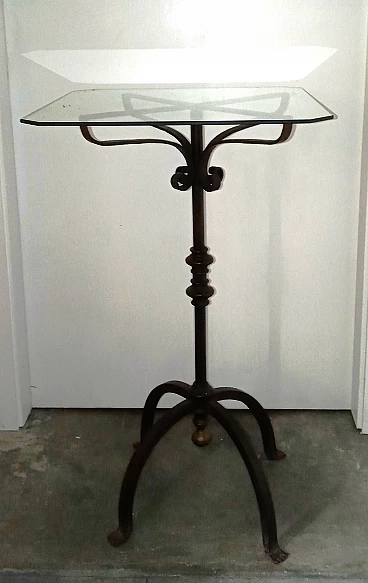 Wrought iron coffee table with glass top, 1940s