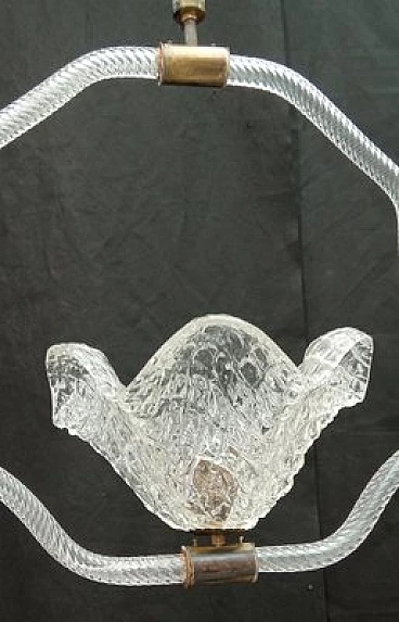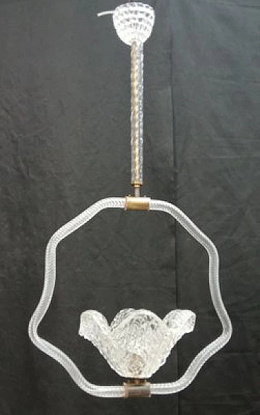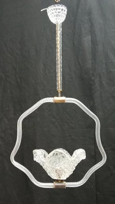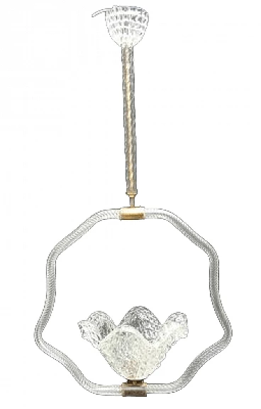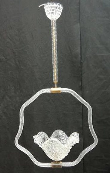 Hanging lamp by Barovier & Toso, 1940s. Made of handcrafted transparent Murano glass. It needs one E27 bulb. Electrical system replaced because the original one did not work well.